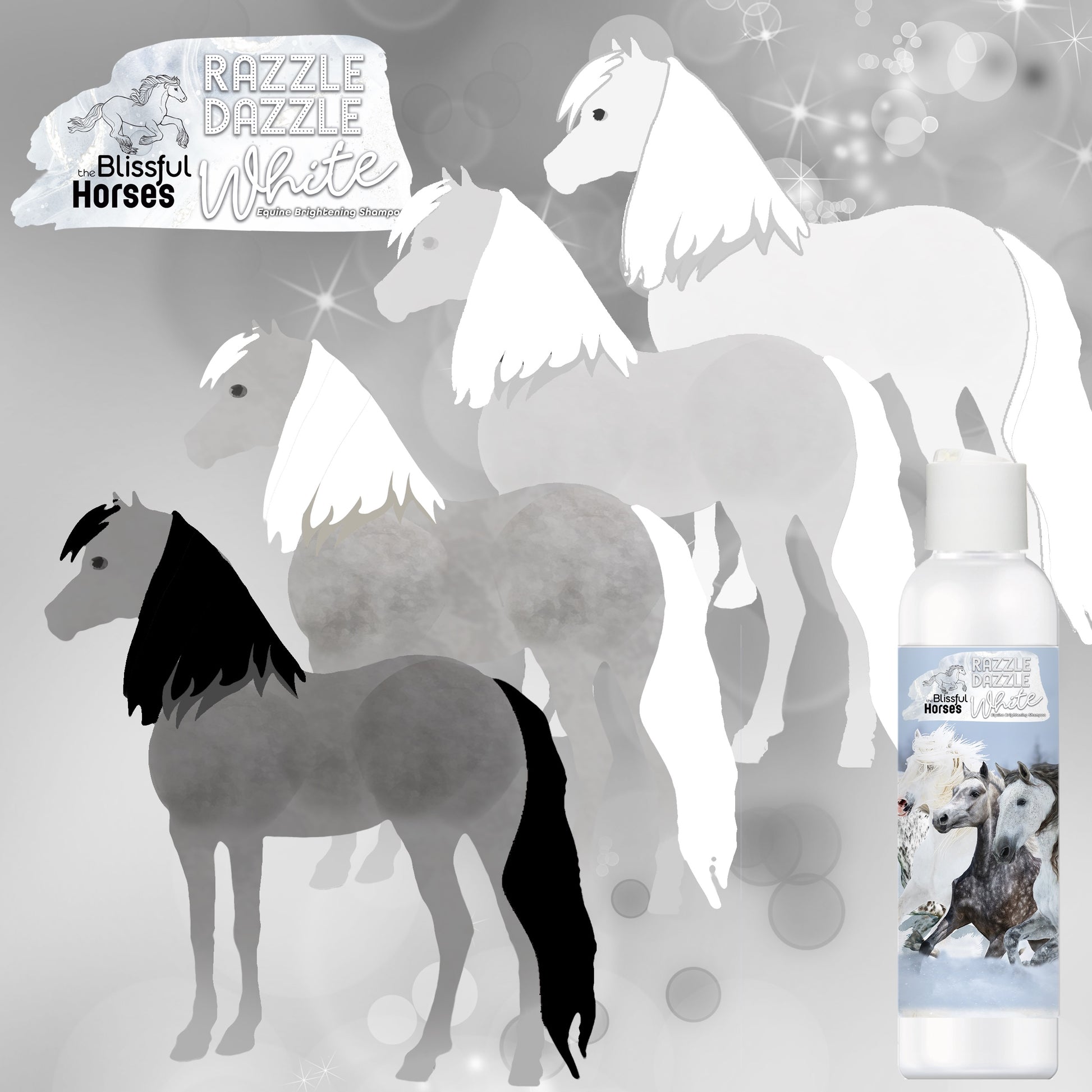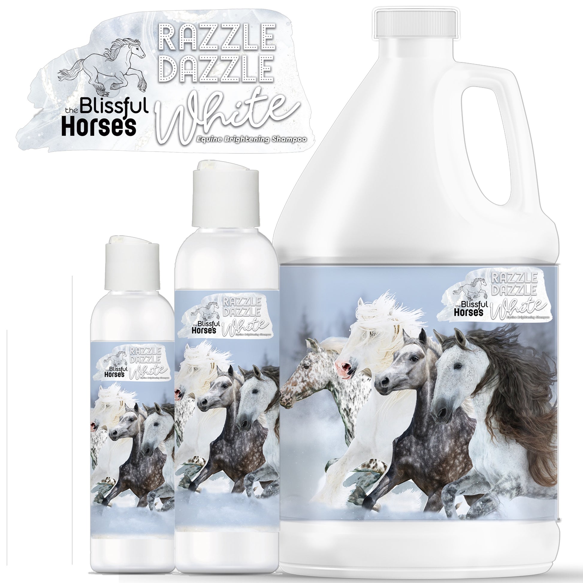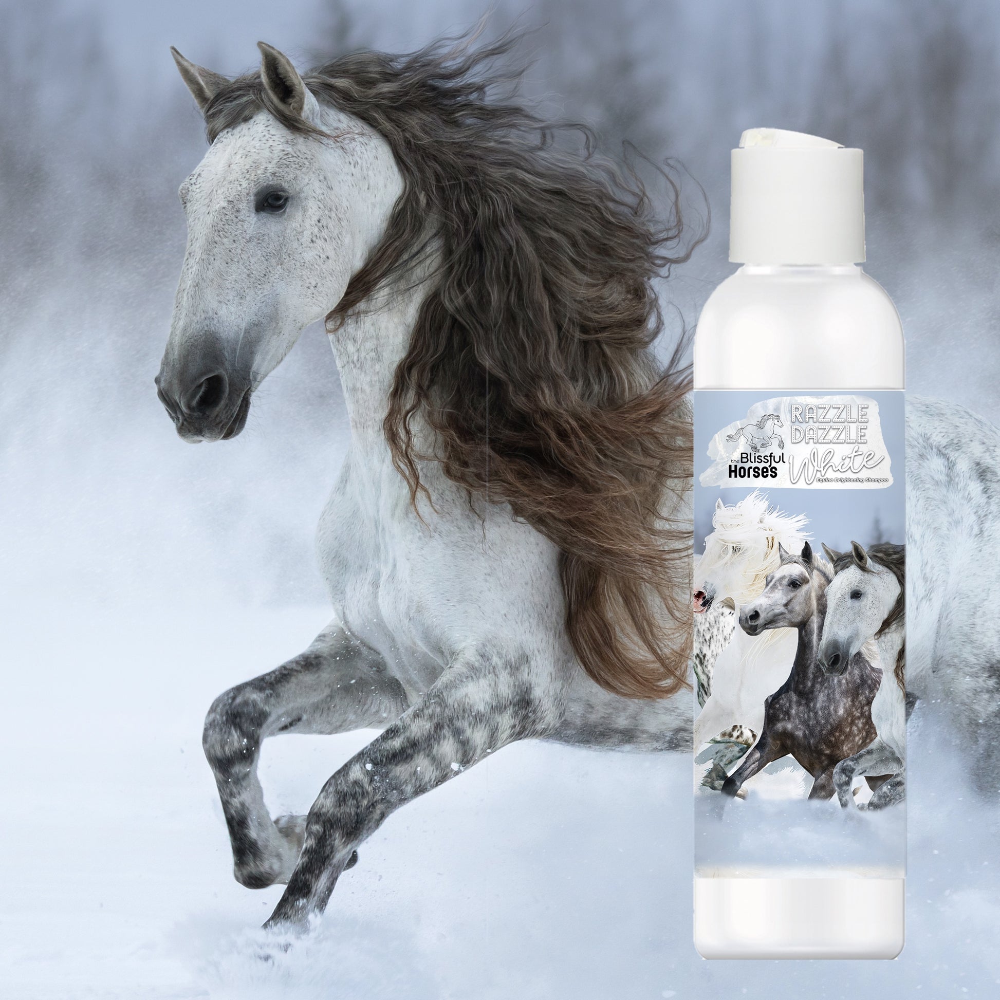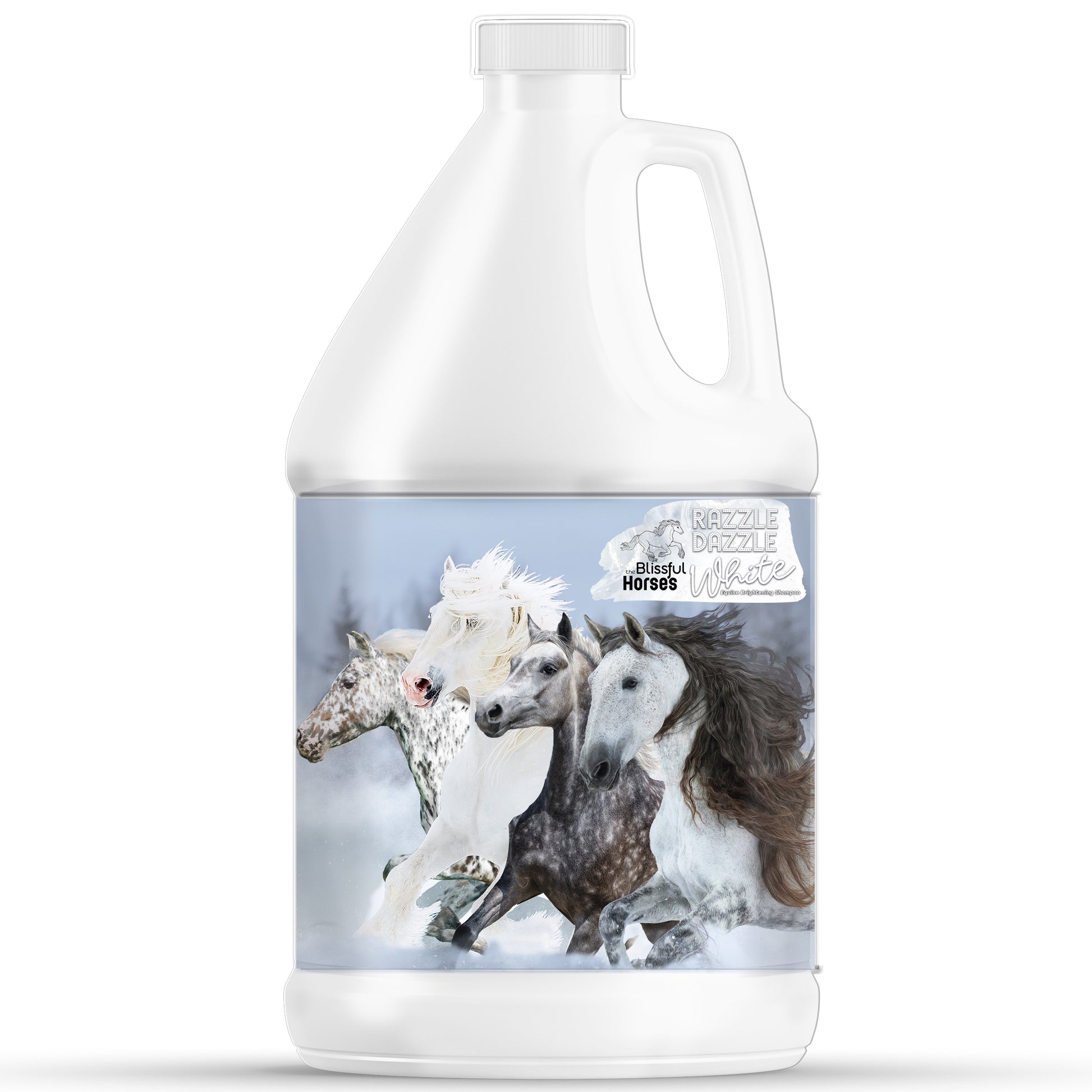 Razzle Dazzle White Horse Shampoo Cleanses, Whitens & Brightens Dingy, Dirty Horses Back to Razzle Dazzle White